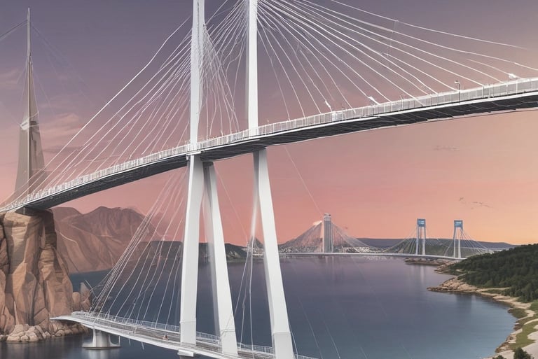 As pontes estaiadas são estruturas icônicas que utilizam cabos tensionados para suportar a carga e distribuir o peso de maneira eficiente